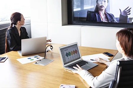 一つの部屋に関係者が集まり行う会議。