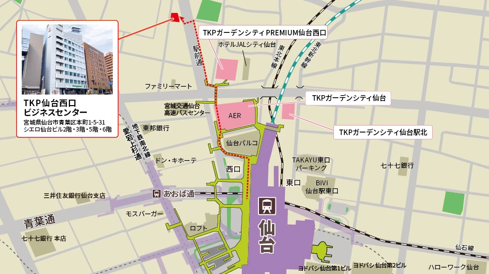 ![]() | アクセスJR東北本線 仙台駅 西口 徒歩5分JR仙石線 あおば通駅 徒歩6分 仙台市地下鉄南北線 広瀬通駅 徒歩6分 |