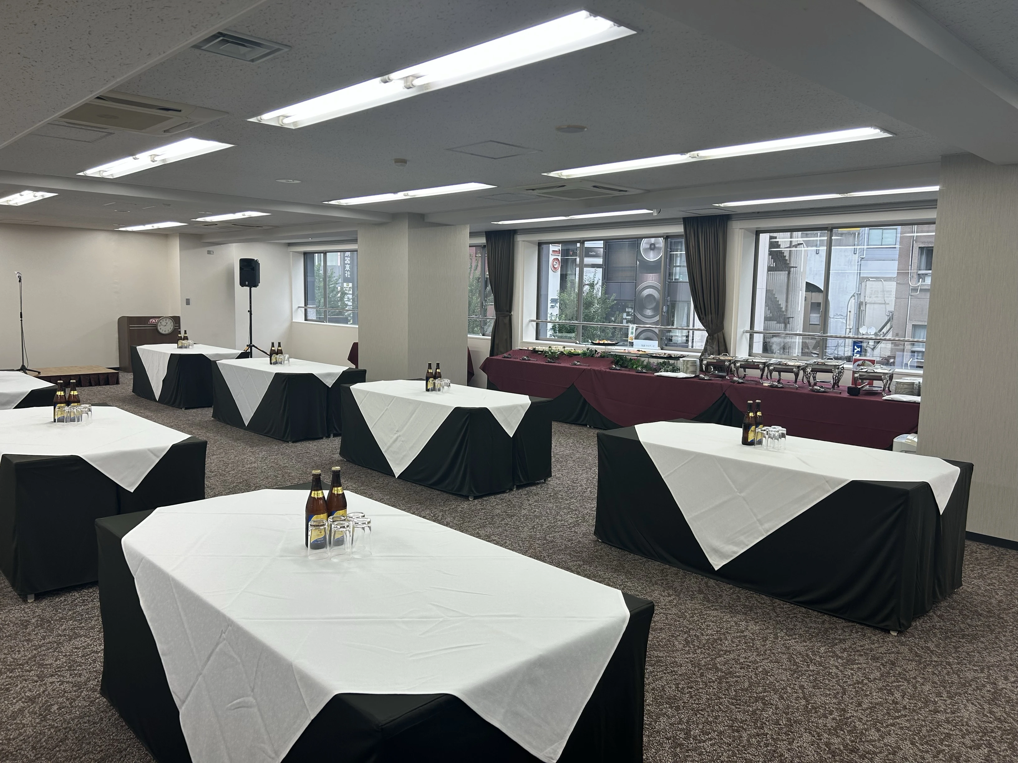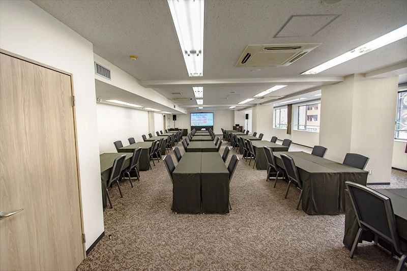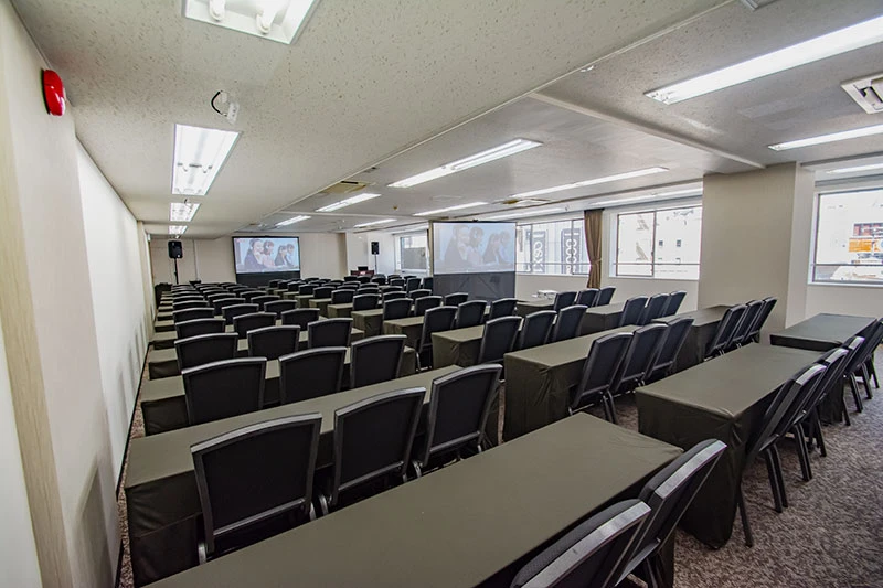 ※飲食物の持込みは原則ご遠慮いただいております。持込みご希望の方は、別途持込料及び清掃料を頂戴する形でご相談を承ります。 ※ご利用時間には、準備・ご入室・ご退室を含みます。時間外のご利用は延長料金が発生致します。 ※ご利用料金等は予告なく変更させていただく場合がございますので、あらかじめご了承ください。 ※プロジェクターを設置する場合は表記の最大定員を収容できない場合がございます。 ※オプションサービス・備品のお申し込み、レイアウトを変更される場合は、ご利用日の3営業日前までにご連絡ください。 ※ご利用方法・ご利用内容によっては通常料金とは別途割増料金が発生する場合がございます。あらかじめご了承ください。 ※ミーティングルームは2時間から、カンファレンスルームは3時間から、ホールは5時間からご予約を承ります。