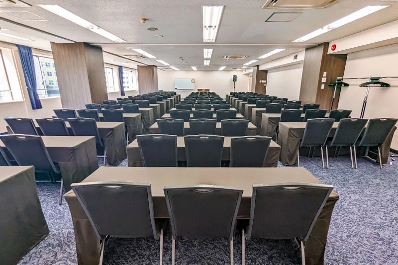 ※飲食物の持込みは原則ご遠慮いただいております。持込みご希望の方は、別途持込料及び清掃料を頂戴する形でご相談を承ります。 ※ご利用時間には、準備・ご入室・ご退室を含みます。時間外のご利用は延長料金が発生致します。 ※ご利用料金等は予告なく変更させていただく場合がございますので、あらかじめご了承ください。 ※プロジェクターを設置する場合は表記の最大定員を収容できない場合がございます。 ※オプションサービス・備品のお申し込み、レイアウトを変更される場合は、ご利用日の3営業日前までにご連絡ください。 ※ご利用方法・ご利用内容によっては通常料金とは別途割増料金が発生する場合がございます。あらかじめご了承ください。 ※ミーティングルームは2時間から、カンファレンスルームは3時間から、ホールは5時間からご予約を承ります。