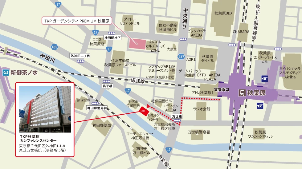 つくばエクスプレス 秋葉原駅 A1出口 徒歩6分 東京メトロ日比谷線 秋葉原駅 3出口 徒歩8分 東京メトロ千代田線 新御茶ノ水駅 B2出口 徒歩8分