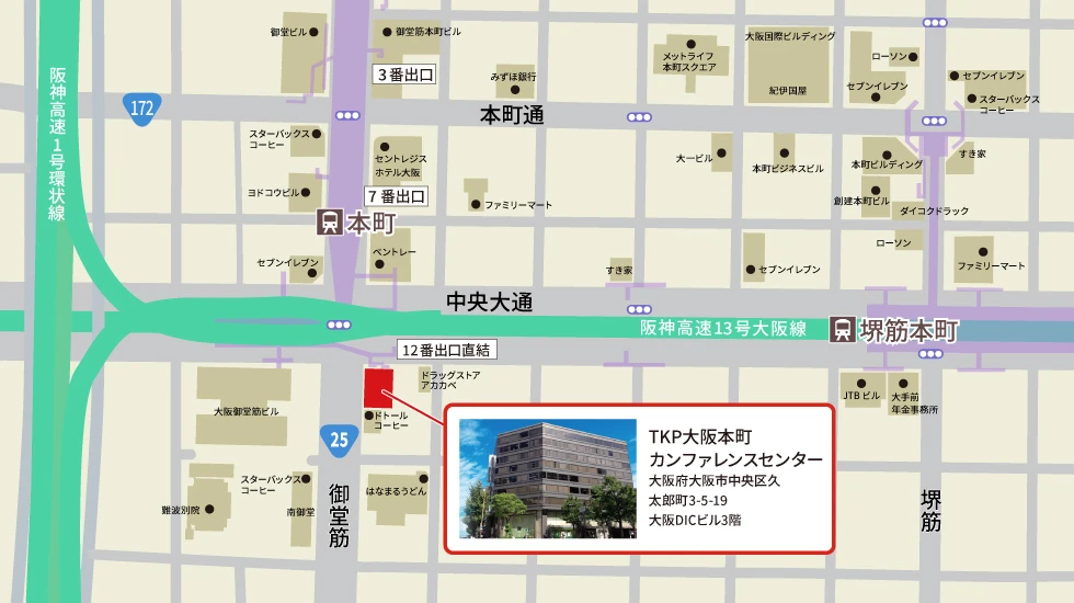 大阪メトロ御堂筋線 本町駅 12番出口 徒歩1分