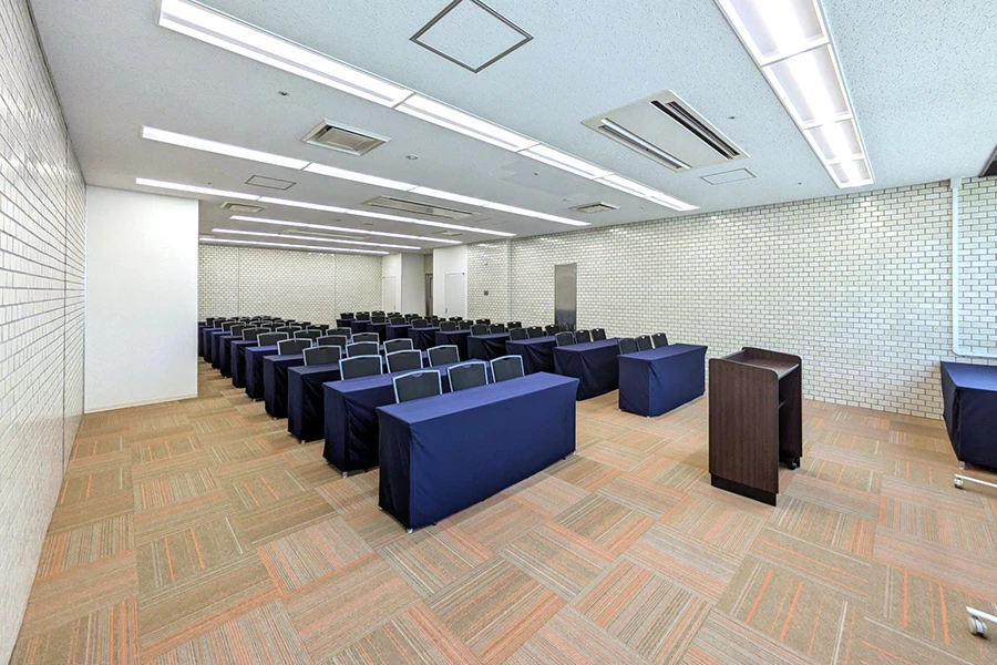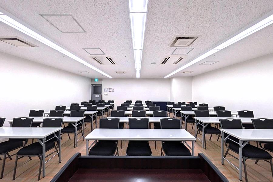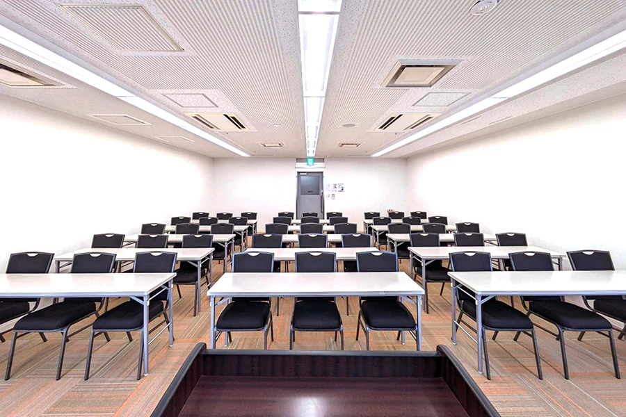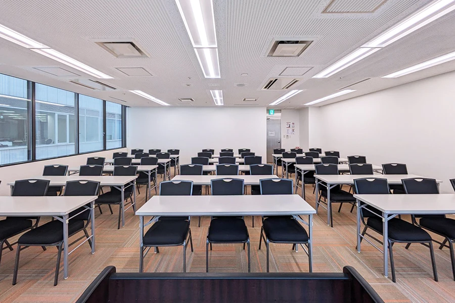 JR札幌駅北口から徒歩2分の好立地。地下通路の出入口が徒歩1分圏内にあり、アクセスも抜群です。最大180名収容の会議室を複数ご用意し、大型の会議・研修・試験に適した環境です。防音設備が整っているため、配信会場や試験会場としての利用に最適です。全室LEDライトを採用した明るい空間で、懇親会やパーティーにも適しています。