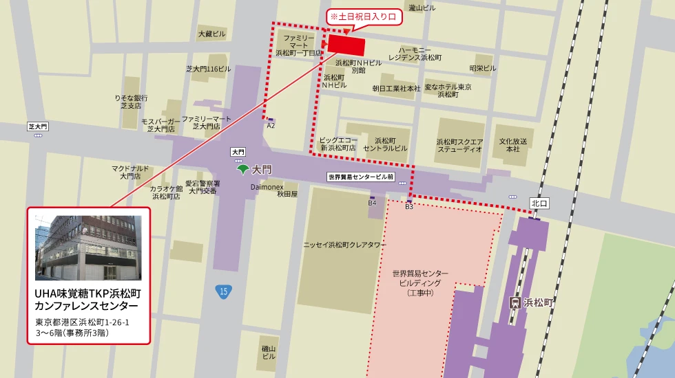 ![]() | アクセスJR山手線 浜松町駅 北口 徒歩4分東京モノレール モノレール浜松町駅 中央口 徒歩5分 都営浅草線 大門駅 A2出口 徒歩2分 都営大江戸線 大門駅 A2出口 徒歩2分 |