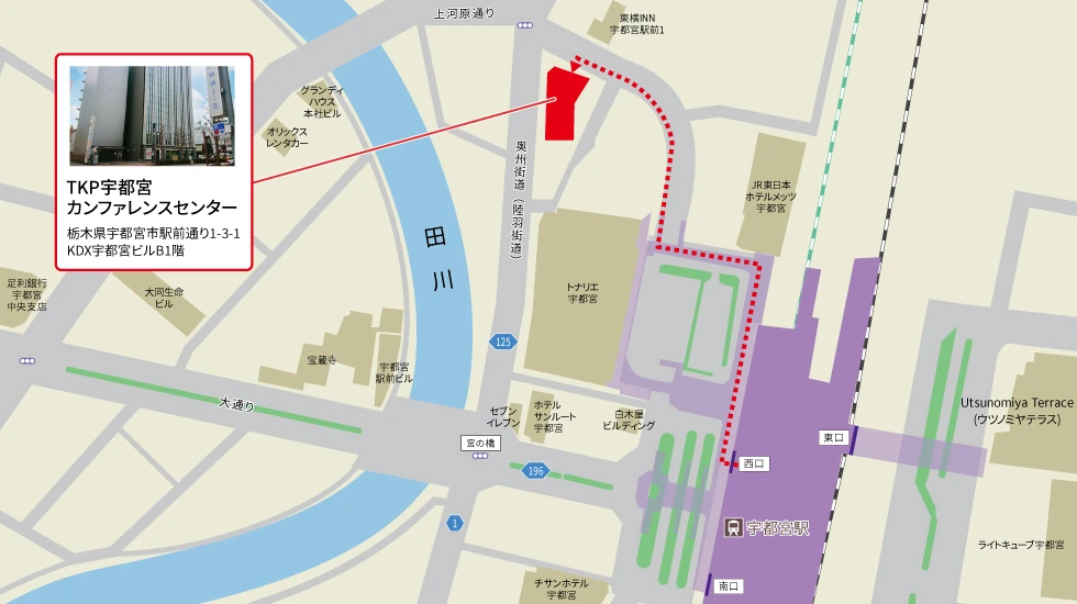 TKP宇都宮カンファレンスセンターTKP宇都宮カンファレンスセンターは、JR宇都宮駅から徒歩4分の会議室施設です。新幹線でのアクセスにも便利で、会議やセミナーなどに対応可能です。最大117名収容のホールを備えており、用途に応じた利用が可能です。