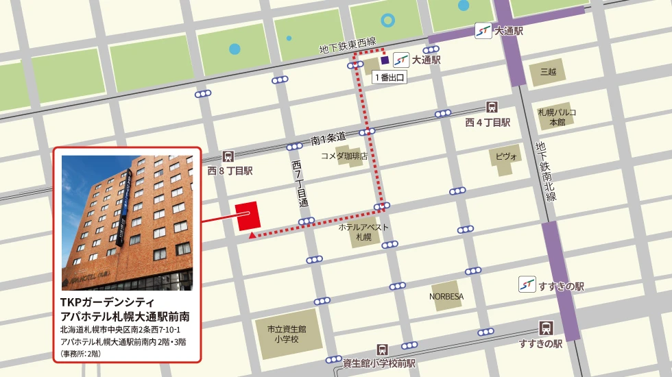 北海道札幌市中央区南2条西7-10-1 アパホテル〈札幌大通駅前南〉2~3階(事務所:2階)