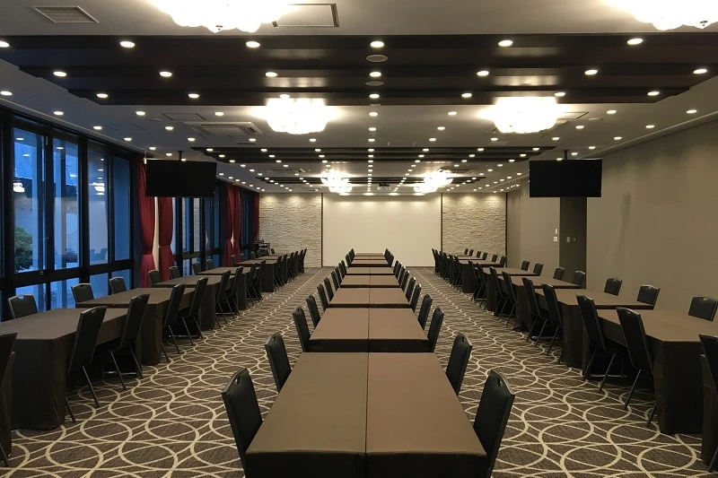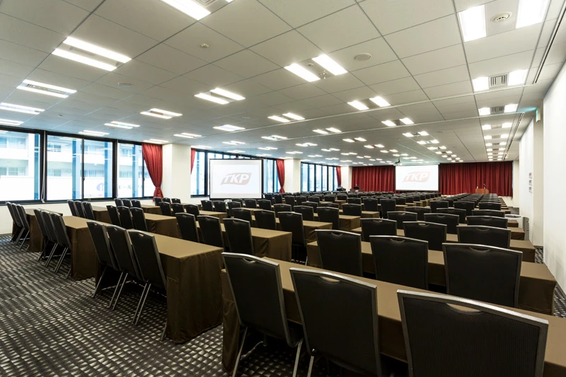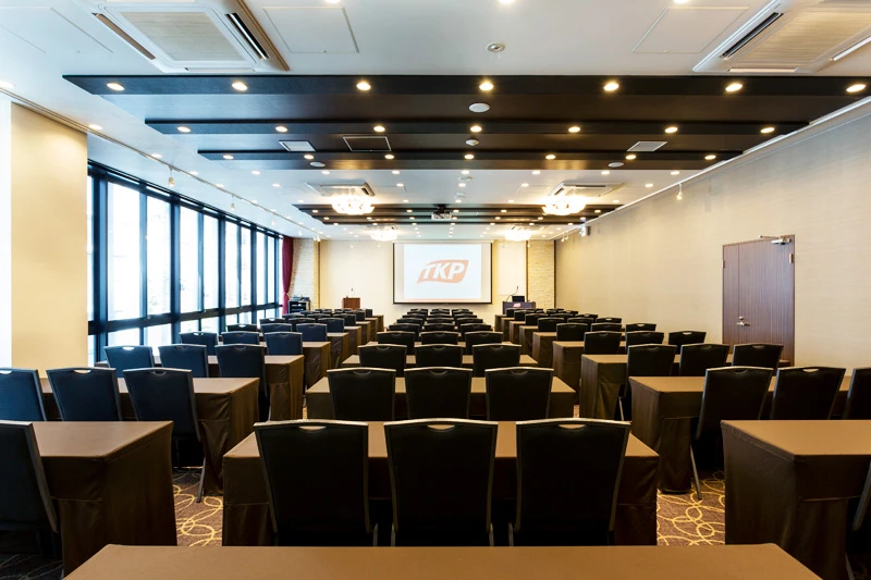 TKPガーデンシティ鹿児島中央は、JR鹿児島中央駅東口から徒歩3分の会議室施設です。スクール形式で最大216名収容可能な会場を備え、会議、セミナー、採用、懇親会など多様な用途に対応しています。応接室を控室として利用するなど、柔軟な運用も可能です。
