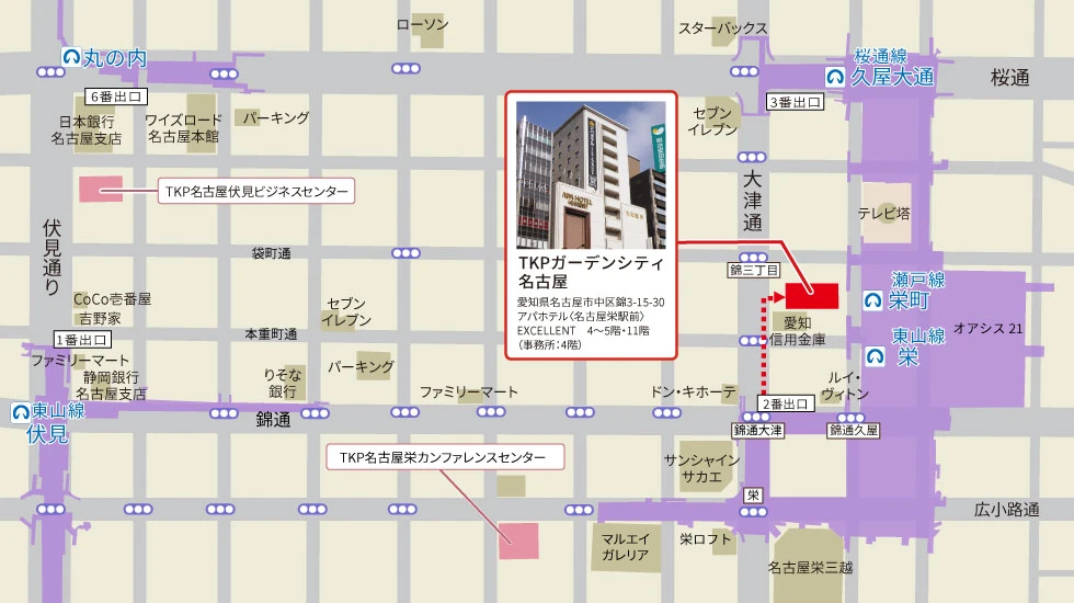 | 住所 | 〒460-0003 愛知県名古屋市中区錦3-15-30 アパホテル〈名古屋栄駅前〉EXCELLENT 4~5階・11階(事務所:4階) | ||