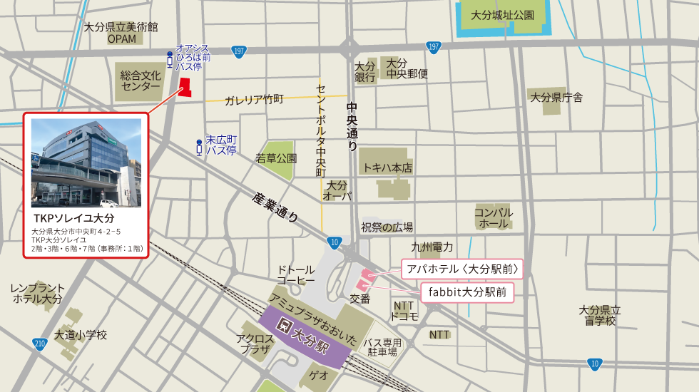 大分県大分市中央町4-2-5 TKPソレイユビル2階・3階・6階・7階(事務所1階)