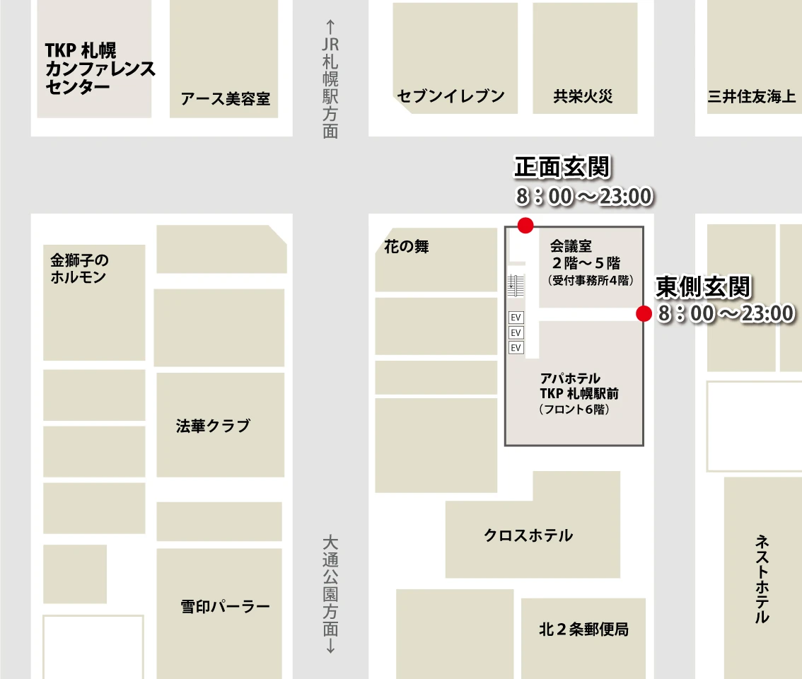 北海道札幌市中央区北2条西2-19 アパホテル〈TKP札幌駅前〉内 TKP札幌ビル 2~5階(事務所:4階)