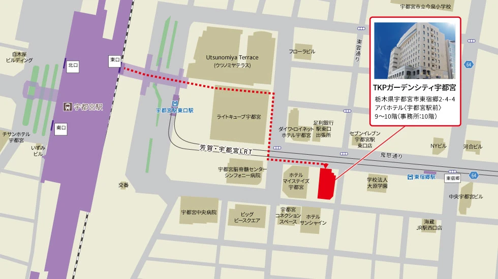 | 住所 | 〒321-0953 栃木県宇都宮市東宿郷2-4-4 アパホテル〈宇都宮駅前〉 9~10階(事務所:10階) | ||