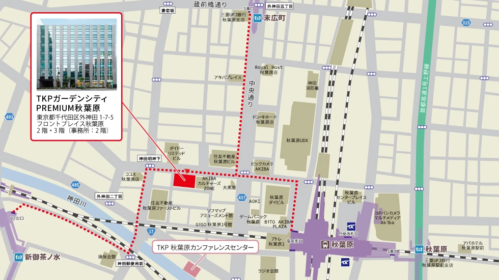 ![]() | アクセスJR線 秋葉原駅 電気街口 徒歩4分つくばエクスプレス 秋葉原駅 徒歩6分 東京メトロ日比谷線 秋葉原駅 3出口 徒歩7分 東京メトロ銀座線 末広町駅 3出口 徒歩6分 東京メトロ千代田線 新御茶ノ水駅 B2出口 徒歩8分 |