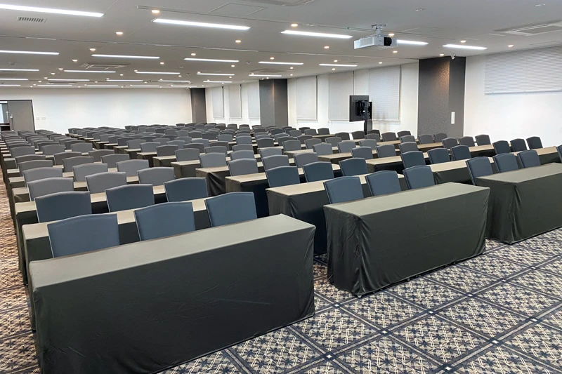 当施設で一番大きなお部屋になります。 映像面は6,000lm天吊りプロジェクターが有り、音響面ではシーリングスピーカーもございます。