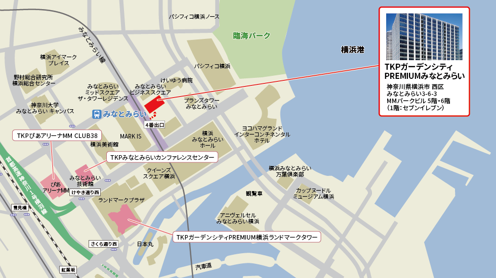 ![]() | アクセスみなとみらい線 みなとみらい駅 4a出口 徒歩1分JR京浜東北線 桜木町駅 北1出口 徒歩15分 JR京浜東北線 横浜駅 きた東口Aより車で約10分 |