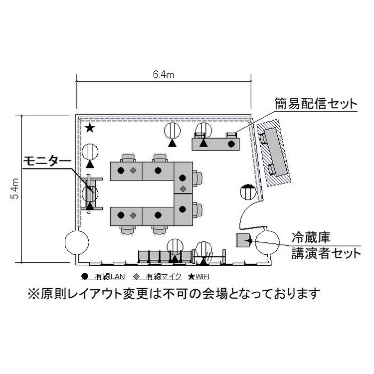 個別空調:有 電気容量(総A数):15A×3系統(機材使用状況・レイアウトによって変動有) LAN口数:4 窓:有 窓開閉可不可: 不可