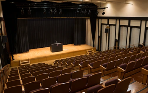 天井高6.9mの開放的な空間であり、250インチの大型スクリーン・プロジェクター・スポットライト完備。セミナー・イベント利用に最適です。