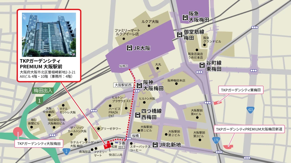 ![]() | アクセスJR線 大阪駅 桜橋口 徒歩5分JR東西線 北新地駅 9番出口 徒歩2分 大阪メトロ四つ橋線 西梅田駅 9番出口 徒歩2分 阪神本線 梅田駅 徒歩5分 大阪メトロ谷町線 東梅田駅 徒歩8分 |