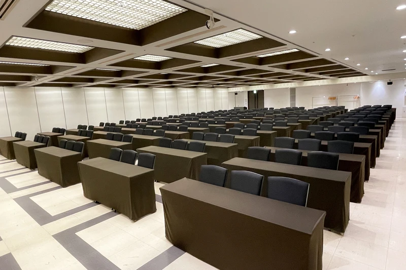 隣室に同規模のメインホールBがあるため、大規模な研修後の懇親会もスムーズにご移動いただけます。 ※こちらの会場は「ホール」に該当いたします。