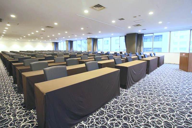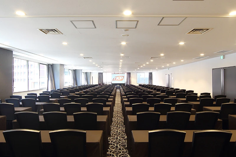 大人数で利用可能なホール会場は、セミナー・研修の他、展示会・商談会にも最適です。 高速インターネット回線を完備しており、配信サポートも承っております。
