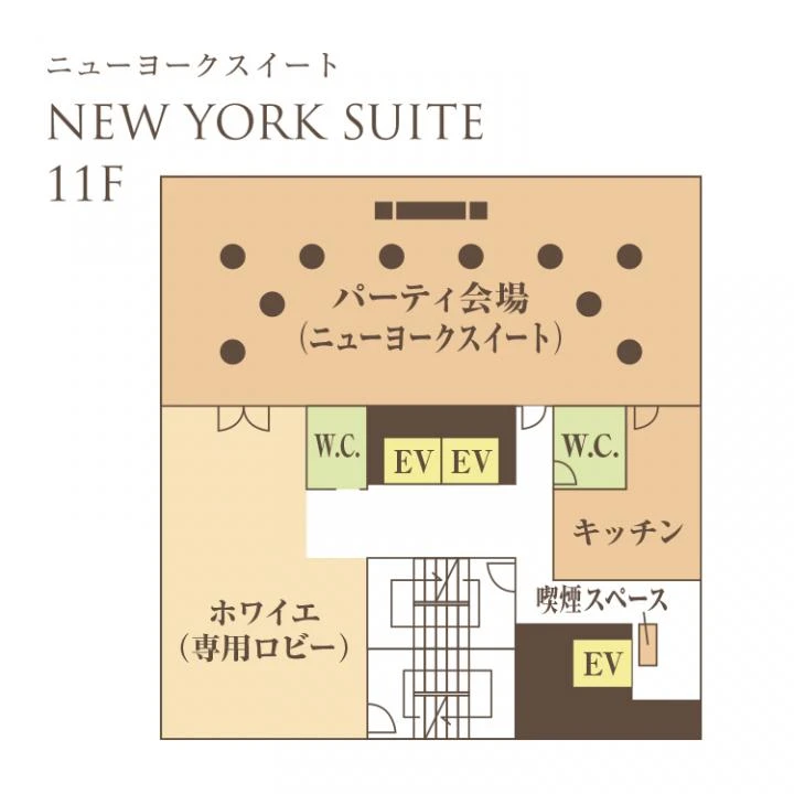 新横浜駅から徒歩5分。ホテル併設で、パーティー終わりに宿泊も