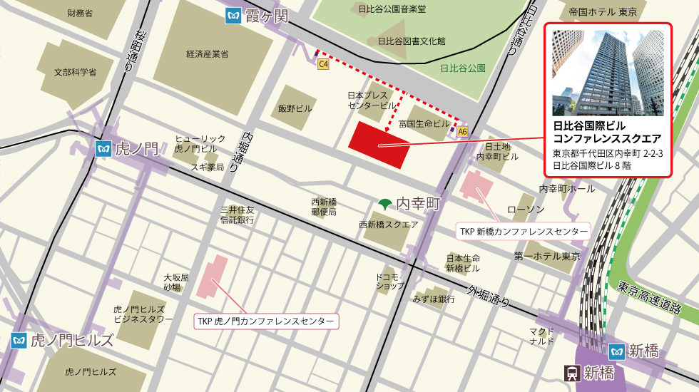 ![]() | アクセス都営三田線 内幸町駅 A7出口 徒歩1分東京メトロ 霞ヶ関駅 C4出口 徒歩3分 |