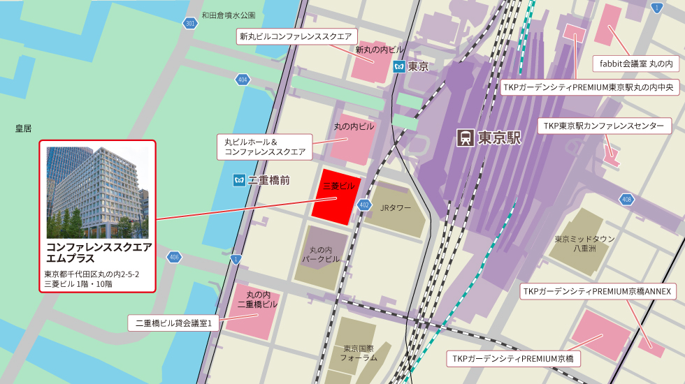 ![]() | アクセスJR東京駅 丸の内南口 徒歩2分東京メトロ丸ノ内線 東京駅 地下道経由 徒歩3分 東京メトロ千代田線 二重橋前駅 4番出口 徒歩2分 |