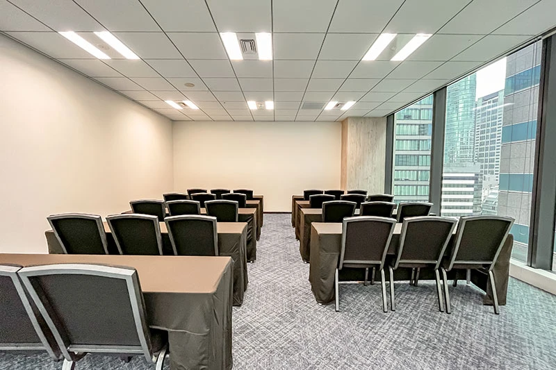 | ミーティングルーム3B | 29.55㎡ 2.7m | 21名 (スクール) | ¥5,000〜¥8,300 / 時間 | |