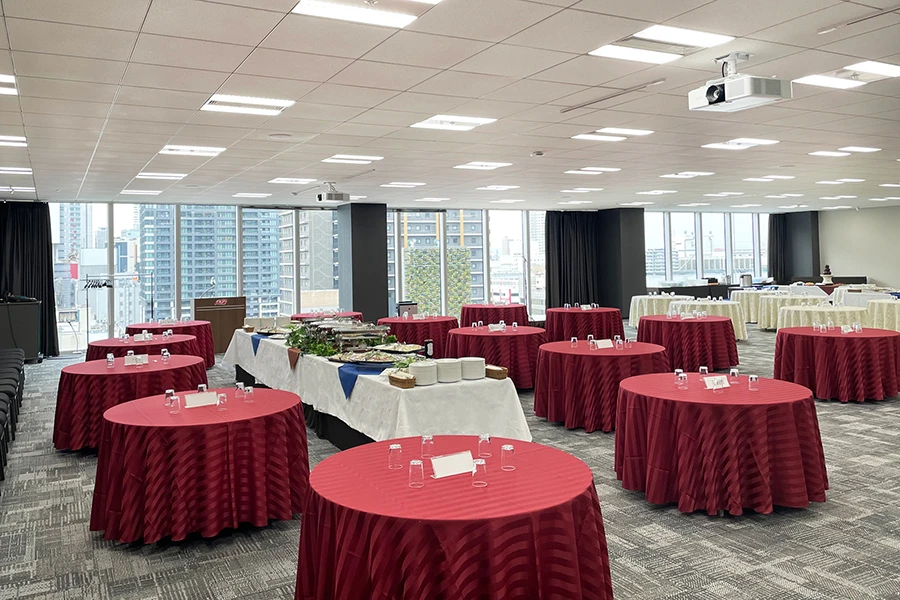 | カンファレンスルームC | 82.5㎡ 3.5m | 60名 (スクール) | ¥14,500〜¥18,600 / 時間 |