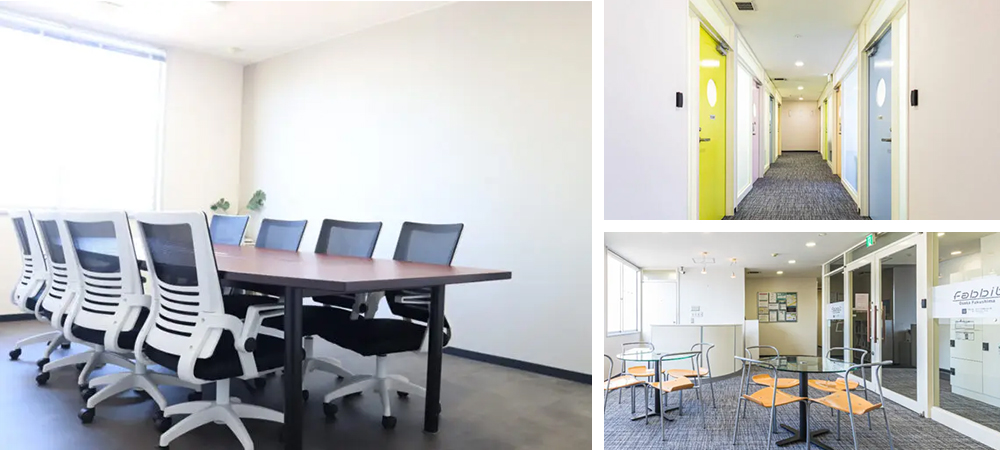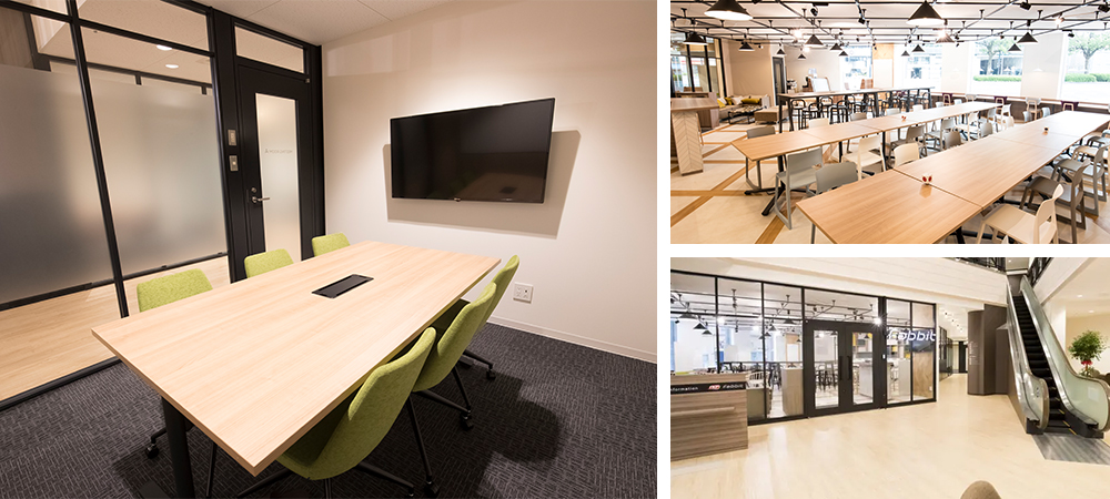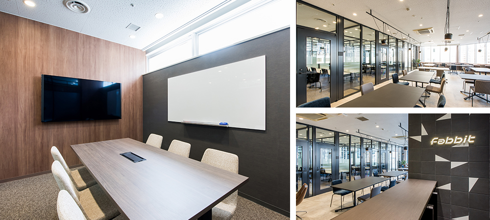 TKP会議室内へのfabbit出店3号店。 JR広島駅南口から徒歩2分のアクセス抜群な施設です。1階がレンタルオフィス、2階から8階まではTKP会議室となっており、会議、研修、セミナーなど多様な用途に対応しています。
